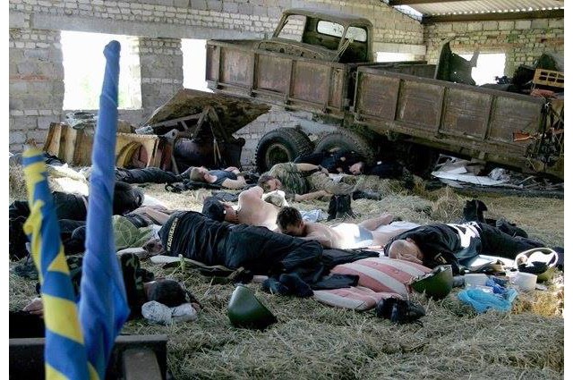 Роскошная жизнь не мешала добровольцам усиленно тренироваться. Очевидно в ожидании золотых гор от олигархов. Без малейшей зарплаты, снабжения, социальных льгот и наград от государства.