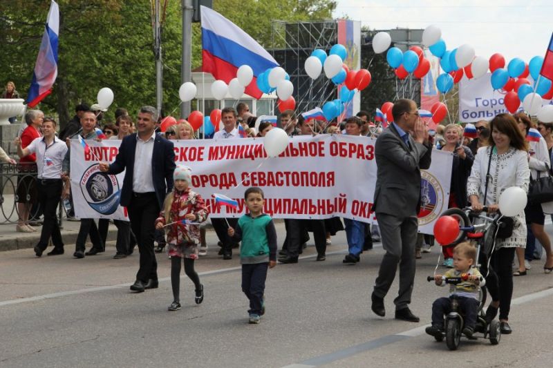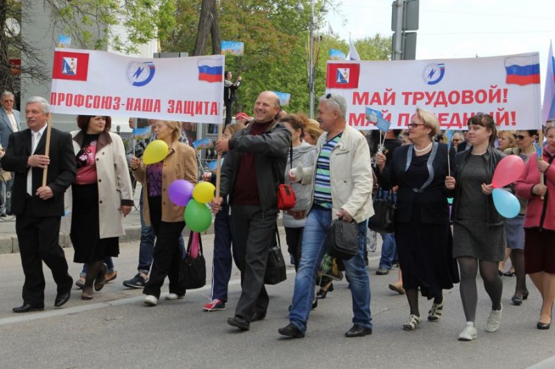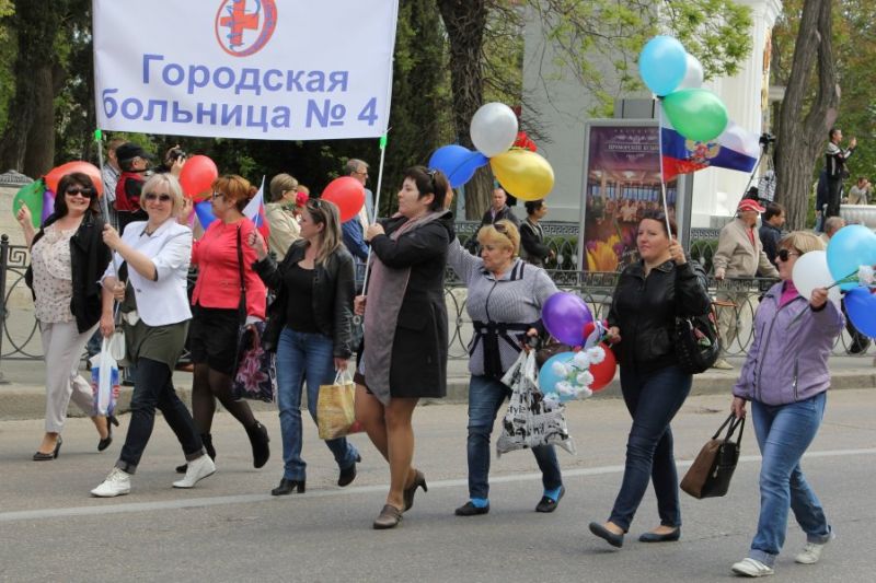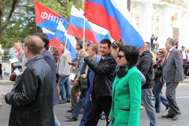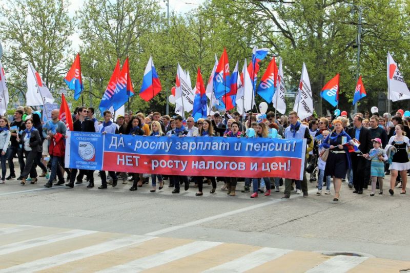 Сімферополь повернувся у минуле. Десь років 30-40 відмотали назад. МирТрудМай, першотравнева демонстрація, совок беснується...