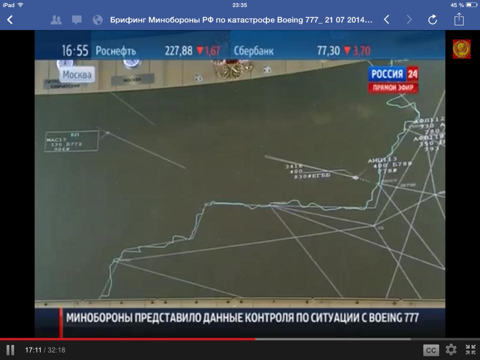 Обратим внимание на это время - последняя связь с Боингом была в 16:21. Самолет никак не мог быть сбит 30 минут назад.