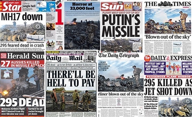б) Украина. Большое количество провоцирующего материала. Порошенко сразу поспешил объявить крушение терактом и выдать обвинения. Украина тут же начала выкладывать данные "перехваченных разговоров", информацию о спутниках, которые "засекли" пуск ракеты с территории России и т. д. На базе этого предлагалось признать ДНР и ЛНР террористическими организациями и ввести войска НАТО. Видно, что идет поток лжи - за такое короткое время ни проделать расследование ни найти виновных было нельзя. Причины такой реакции уточняются, но похоже на то, что новая украинская власть действует по заранее спланированному сценарию.