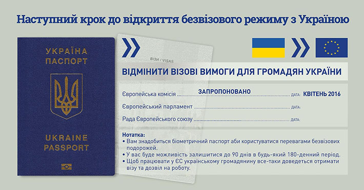 Після внесення Європейською Комісією законодавчої пропозиції про запровадження безвізового режиму для громадян України, ця пропозиція має бути схвалена Європейським Парламентом, а далі — Радою ЄС.