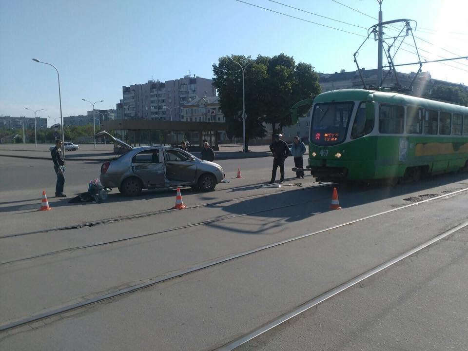 В воскресенье, 8 мая утром в Харькове на перекрестке улиц Плехановская и Державинская столкнулись трамвай и автомобиль.