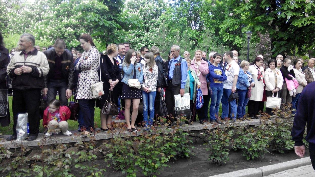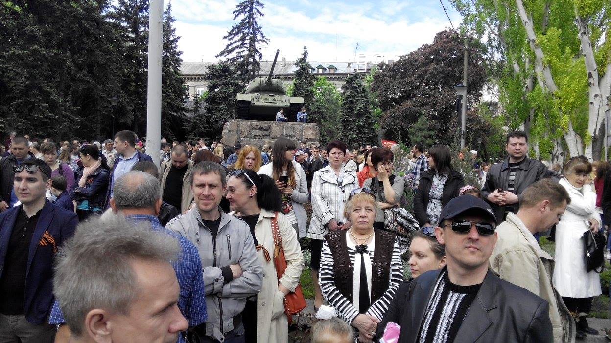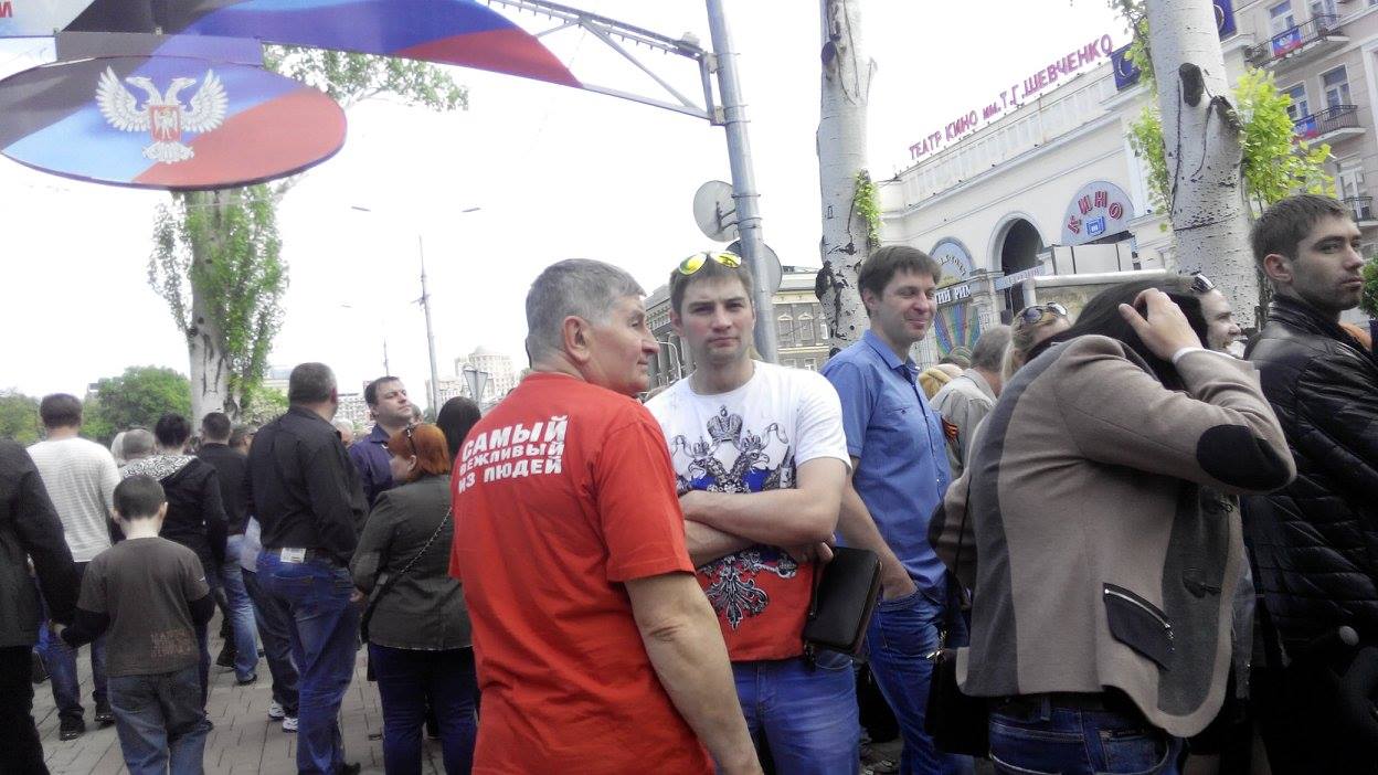 Отмечается, что в Донецк приезжают жители из окрестных городов. Люди держат в руках символику группировки «ДНР», сепаратистских движений «Молодая республика» и «Донецкая республика», а также символику Советского союза.