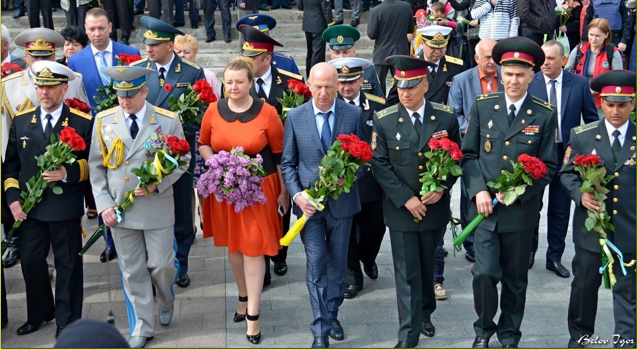 Одна из них оказалась в первом ряду важных лиц города — Тамила Афансьева, экс-председатель общественного совета при ОГА. Общественница известна уже своими эксцентричными нарядами. Однажды она явилась на заседание ОГА в камуфляжном сарафане.