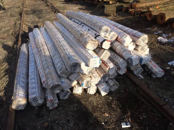 Одним из популярных средств перевозки сигарет у контрабандистов также являются бревна. В стволах деревьев находчивые преступники выдалбливают тайники. Так, в марте сотрудники СБУ задержали целый поезд древесины с Волыни, направлявшийся в Польшу. Каждое дерево провозило в себе несколько блоков сигарет — всего 25 тысяч пачек.