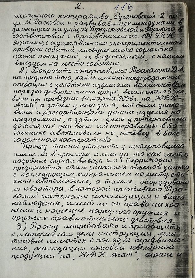 Также мотивированный «золотыми изделиями» прокурор Мельничук, лично распорядился вернуть золото «потерпевшему» Тракалюку без признания этих изделий вещественным доказательством по уголовному делу, и, естественно, проведения каких-либо экспертиз.