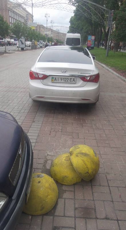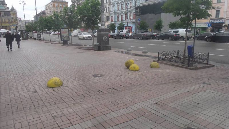 Київські водії виривають напівсфери проти паркування на Хрещатику
