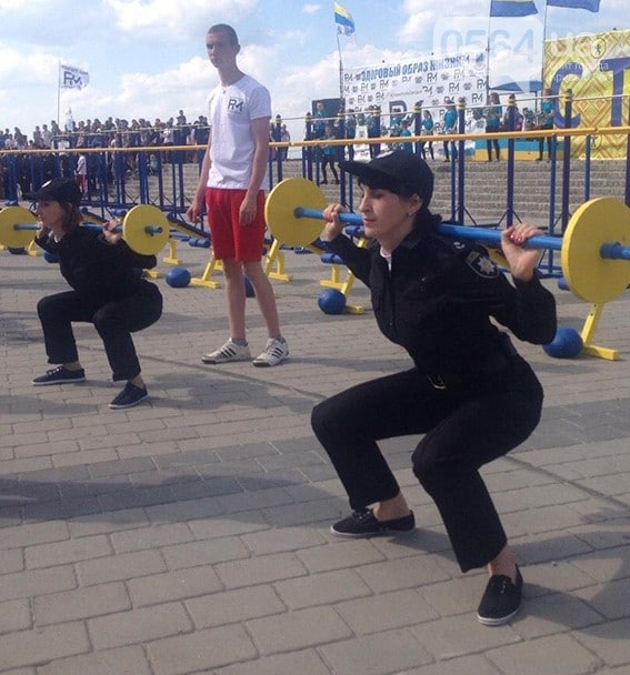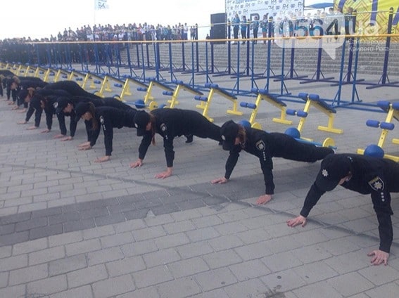 Девушки в полицейской форме соревновались между собой в скорости и мастерстве качать пресс, отжиматься и приседать, а ребята-полицейские показали свои умения подтягиваться на перепонке, отжиматься на брусьях, качать пресс, поднимать две 16-килограммовые гири и других силовых упражнениях.