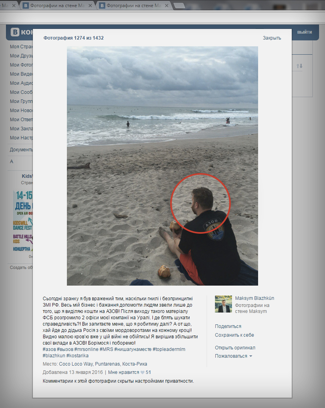 «Сьогодні зранку я був вражений тим, наскільки гнилі і безпринципні ЗМІ РФ. Весь мій бізнес і бажання допомогти людям звели лише до того, що я виділяю кошти на АЗОВ! Після виходу такого матеріалу ФСБ розгромило 2 офіси моєї компанії на Уралі. І де блять шукати справедливість?! Ви запитаєте мене, що я робитиму далі? А от що, хай йде до дідька Росія з своїми мордоворотами на кожному кроці! Видно малою кров’ю вже у цій війні не обійтись! Я вирішив збільшити свої вклади в АЗОВ! Борімося і поборемо!».