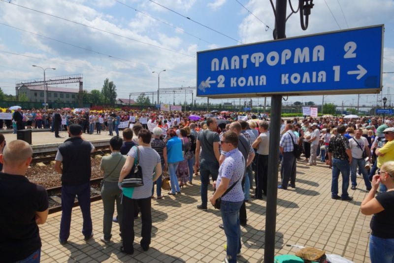 Ораторы, выступавшие перед массовкой пообещали, что с 30 мая больше не будут выпускать поезда с подконтрольной боевикам территории на территорию, подконтрольную Киеву, если «Укрзалізниця» не даст им денег. О том, что такой шаг скорее всего приведет к остановке промышленных предприятий Донбасса, выступавшие не упоминали.