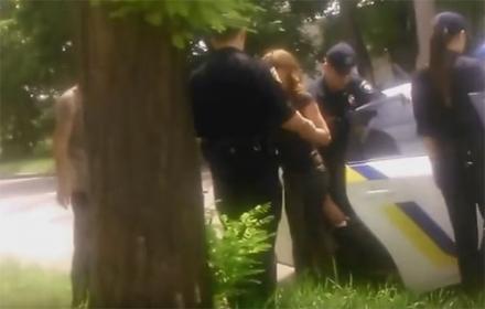 В отделе полиции у него приняли заявление по указанной статье 152 КУоАП. Как показано на видео, расклейщица объявлений агрессивно вела себя по отношению к полицейским и те применили к ней силу.