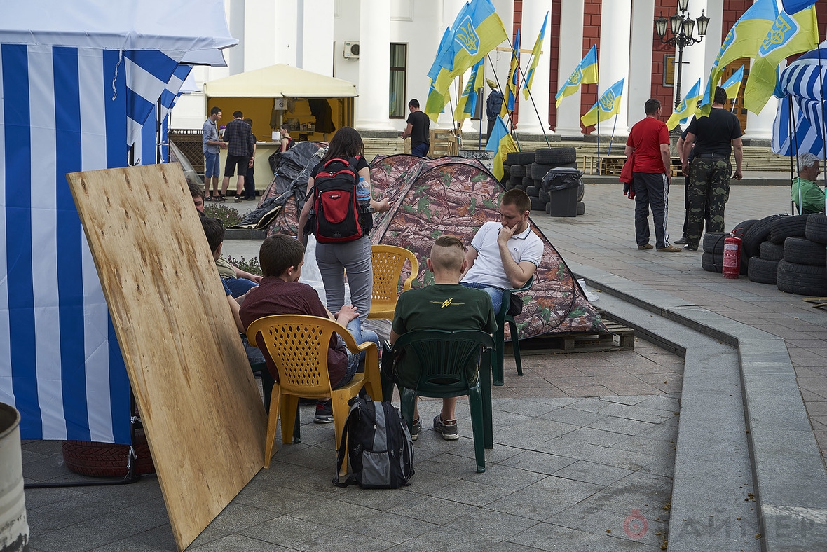 Палаточный лагерь, в котором собираются люди, требующие отставки одесского городского головы Геннадия Труханова, появился на Думской площади 13-го апреля, за два дня до завершения «Прокурорского майдана», на котором активисты добились отставки Николая Стоянова с должности главы одесской областной прокуратуры.