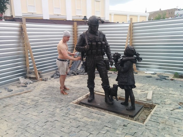 В Симферополе устанавливают новый памятник «зеленому человечку» с котом