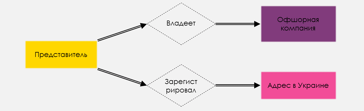 1. Представитель владеет офшором (officer→entity);