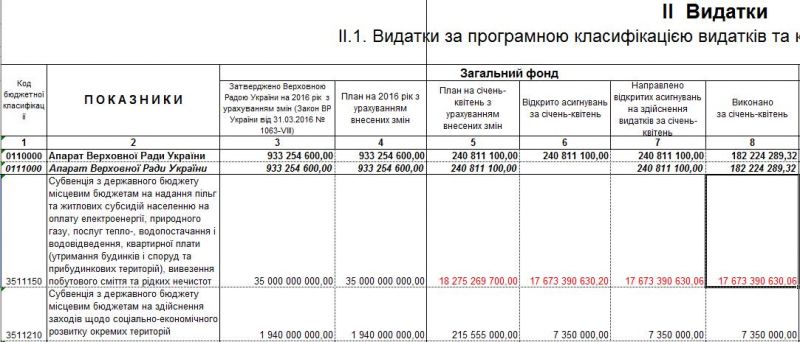1) За 4 месяца 2016 года за коммунальные услуги, не считая электроенергию было начислено всего 27.8 млрд гривен. При этом Бюджет на оплату коммунальных услуг перечислил в местные бюджеты огромную цифру - 17.6 млрд гривен. Таким образом получается, что если бы все деньги дошли до потребителей, то государство бы заплатило 63.3% всех коммунальных платежей за свой счет. И только 36.7% - бы заплатило население. Но я уверен что это не так. Более того - при таком картине вообще не имеет смысла подобное действие.