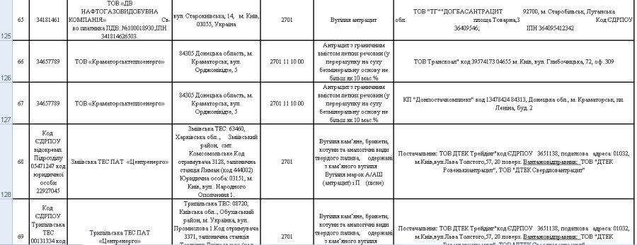 Ознакомиться с полным перечнем предприятий, которые имеют право возить уголь с территории, контролируемой «Л-ДНР» вы можете, просмотрев фото-таблицу. «Андерсон групп», связанная с лидером террористов Денисом Пушилиным – не единственная интересная позиция в этом секретном списке привилегированных. Есть в нем и такой партнер «Центрэнерго», как «Интегралл». Зарегистрированная в г. Старобельске Луганской области по адресу ул.Жовтнева 36, эта фирма имеет в собственниках жителей оккупированного Антрацита, фамилии которых мелькали в одном скандале с заместителями председателя СБУ Виталием Маликовым и Олегом Фроловым. Как сообщали «Наші гроші», вся эта компания оказалась владельцами захваченной земли в заповедном Чернечьем лесу под Киевом. А кто скрывается за зиц-председателями из Антрацита – угадывайте сами. Внимательное изучение списка, который нам достался от неравнодушных угольщиков, позволит обнаружить и другие фирмы-прокладки, которые задействованы в схемах по поставкам из «Л-ДНР».