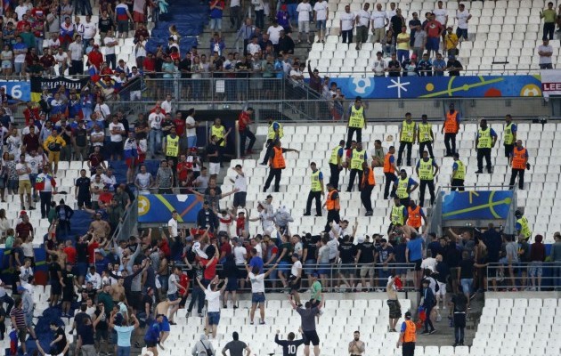 Нагадаємо, після закінчення матчу між збірними Англії та РФ бійка між фанами спалахнула прямо на трибунах. Приблизно 30 російських уболівальників прорвали оточення стюардів і побігли до сектору з англійськими фанатами. Вони хотіли зірвати прапори і почали закидати англійців різними предметами. У справу втрутилися стюарди, і диктор кілька разів російською мовою попросив росіян вгамуватися. Коли англійці почали розходитися зі стадіону, російських уболівальників не випускали.