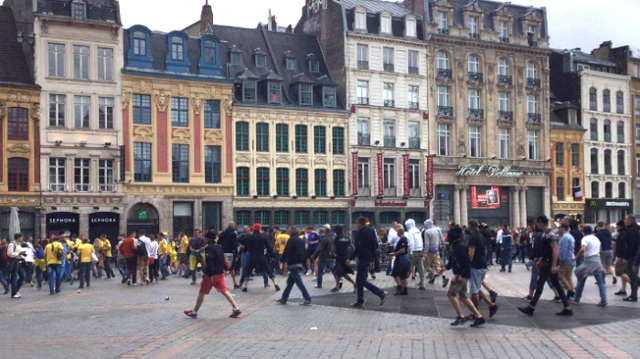 На площади в Марселе украинский спортивный корреспондент стал свидетелем нападения болельщиков немецкой сборной на украинских. По его словам, внезапно на площади, где находились фанаты украинской сборной, появилась группа людей в черном. Это были немцы. Она вовлекли в драку украинцев.