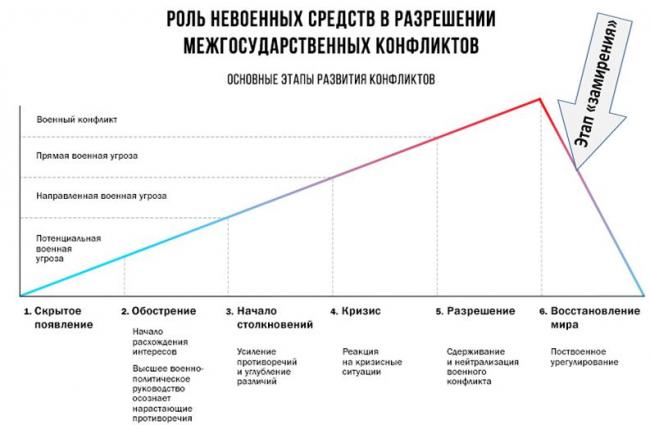 По мнению главы российского Генштаба В.Герасимова, подобная практика вписывается в последовательность этапов современной войны.