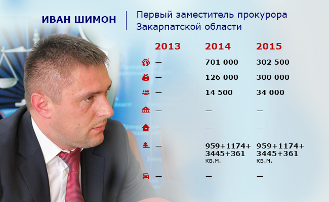Первый заместитель прокурора Закарпатской области Иван Шимон за время своей карьеры поработал на разных должностях в Закарпатской и Львовской областях, позже длительное время занимался обеспечением законности в стенах ГПУ. В начале минувшего года стал заместителем областного прокурора Закарпатья. Нынешнюю должность он получил спустя несколько месяцев – в апреле 2015 года. Ходят слухи, что повышение было вовсе не бесплатными не за хорошие заслуги, а обошлось ему в 300 тыс. долларов.