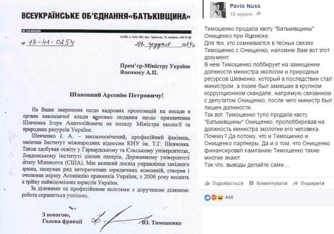 Поспешил обвинить Тимошенко в связях с Онищенко и другой известный своей поддержкой Петра Порошенко комментатор – Павел Нусс.