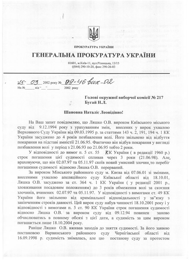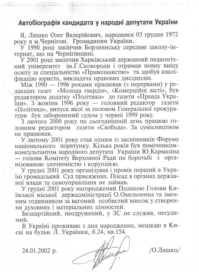 Нет, это не горячечный бред недобросовестного автора: факты подтверждены материалами уголовного дела и свидетельствами самого Ляшко. Да-да: вскоре его посадили за растрату госимущества и мошенничество. В ходе следствия всплыли и подделка редакционного бланка, и незаконное получение квартиры, и мошенническое приобретение автомобилей «Волга», купленных за средства коммерческих структур.