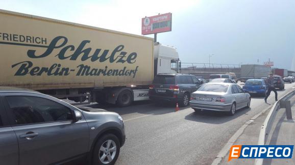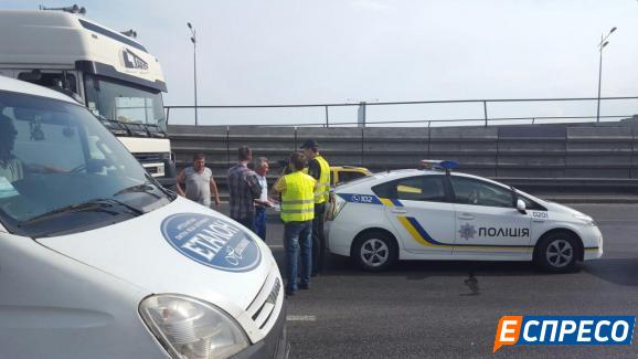 Фура рухалася на третій смузі по Південному мосту, а авто Омельченка - на другій. Дві машини одночасно вирішили перелаштуватися і притерлися.