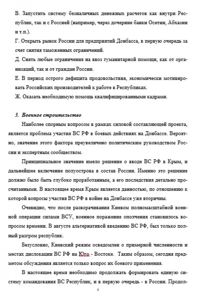 В настоящее время необходимо продолжать формировать единую систему командования ВС Республик, и в первую очередь – в России. Продолжить формирование ВС из боевых отрядов ополчения, передавать политические и экономические функции от ополчения гражданским администрациям.