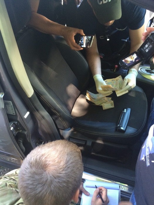 Подчеркивается, что сотрудники спецслужбы совместно с военной прокуратурой задержали председателя комиссии возле здания военкомата в собственном автомобиле во время получения всей суммы взятки в гривневом эквиваленте.