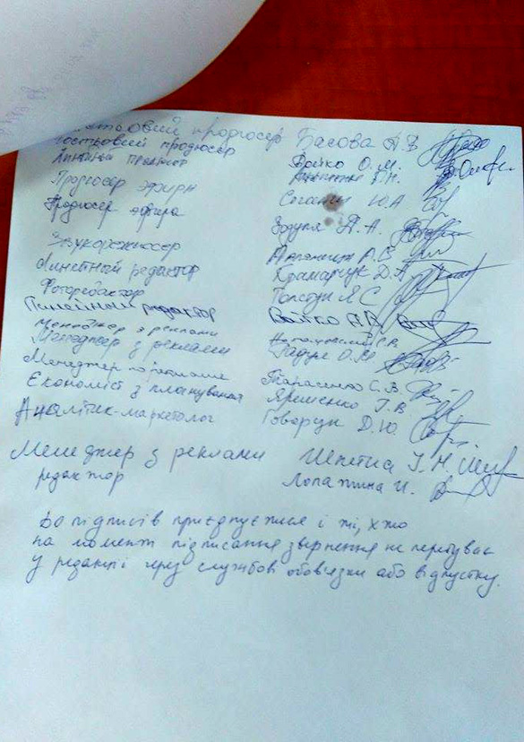 Как сообщается в письме, к подписантам присоединяются и те, кто на данный момент отсутствует в редакции по работе или в находится в отпуске.