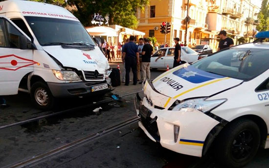 Вчера вечером, 11 июля 2016 года, патрульные полицейские г. Одессы устроили ДТП из трех машин. Как сообщает издание "Думская", полицейские ехали по встречке с мигалками и врезались во внедорожник «Митсубиси Паджеро». В результате столкновения, внедорожник задел «Мерседес Спринтер» и перевернулся. Водителю «Митсубиси» понадобилась госпитализация.