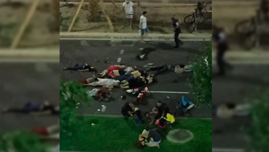 1.30 Очевидцы рассказывают, что террористы давили людей на грузовике, а потом начали их расстреливать. Появляются ужасающие фото убитых людей.