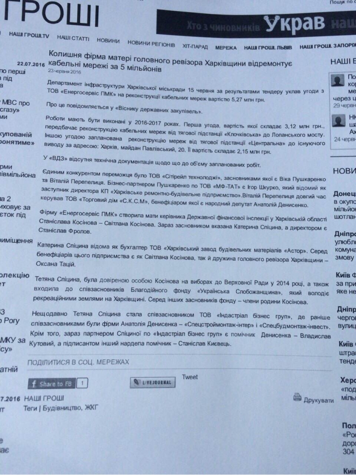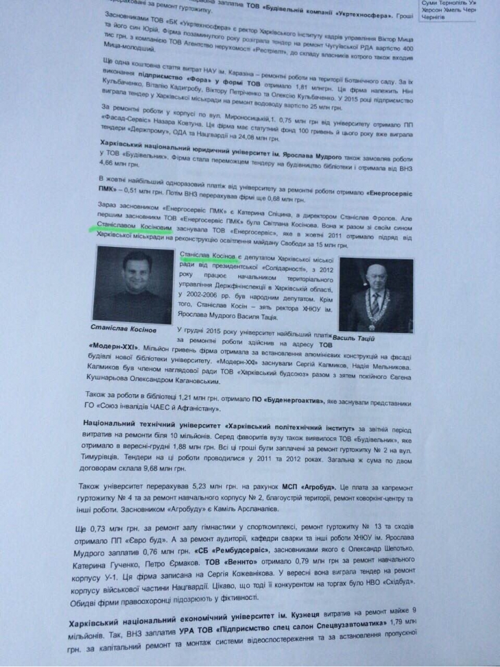 А проверки правильности расходования этих средств осуществляет именно возглавляемый Косиновым С.А. государственный контролирующий орган. И очень много вопросов к качеству этих проверок. Ревизоры практически ничего не "находят" при проверках миллионных договоров на выполненные работы этими фирмами. Общественность Харькова давно обращает внимание органов власти на необходимость очисть ряды чиновников от коррупционера. Ведь Косинов С.А. на должность был назначен еще преступной предыдущей властью.