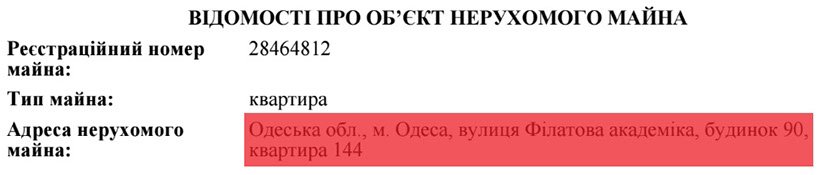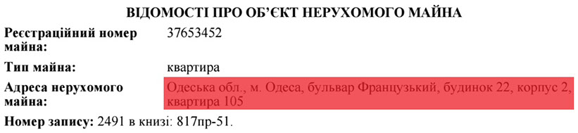 А от далі у нас постає питання: в її декларації за 2013р. вказана ще одна квартира площею 114м², але ми в реєстрі прав власності на нерухоме майно знайшли... дві квартири, які належать їй :) Обидві знаходяться в Одесі: перша - в елітному районі на Французькому бульварі (володіє з 2012р.), ще одна - на вулиці академіка Філатова (з 2009р.)