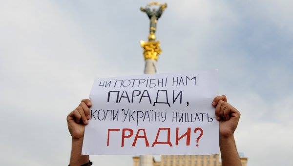 Анонс: 24 серпня о 7:00 з усього Києва та інших міст України з’жджаємось на Майдан (там якраз буде йти монтаж сцени і трибуни для Петьки) і блокуємо його та Хрещатик сидячим страйком. Вимога у нас одна: Петька на наших очах підписує указ про те, що всі солдати і вся військова техніка в найближчі дні після параду вирушать на зміцнення фронту в зону АТО. Патрiоти зi Львова, Дніпра, Одеси або будь-якого іншого міста України, не пошкодуйте грошей і приїжджайте в Київ. Цей день ви будете ще довго пам’ятати: спочатку притиснемо Петьку, як ту вошу, а потім подивимося на парад та погуляємо разом на святкових заходах.