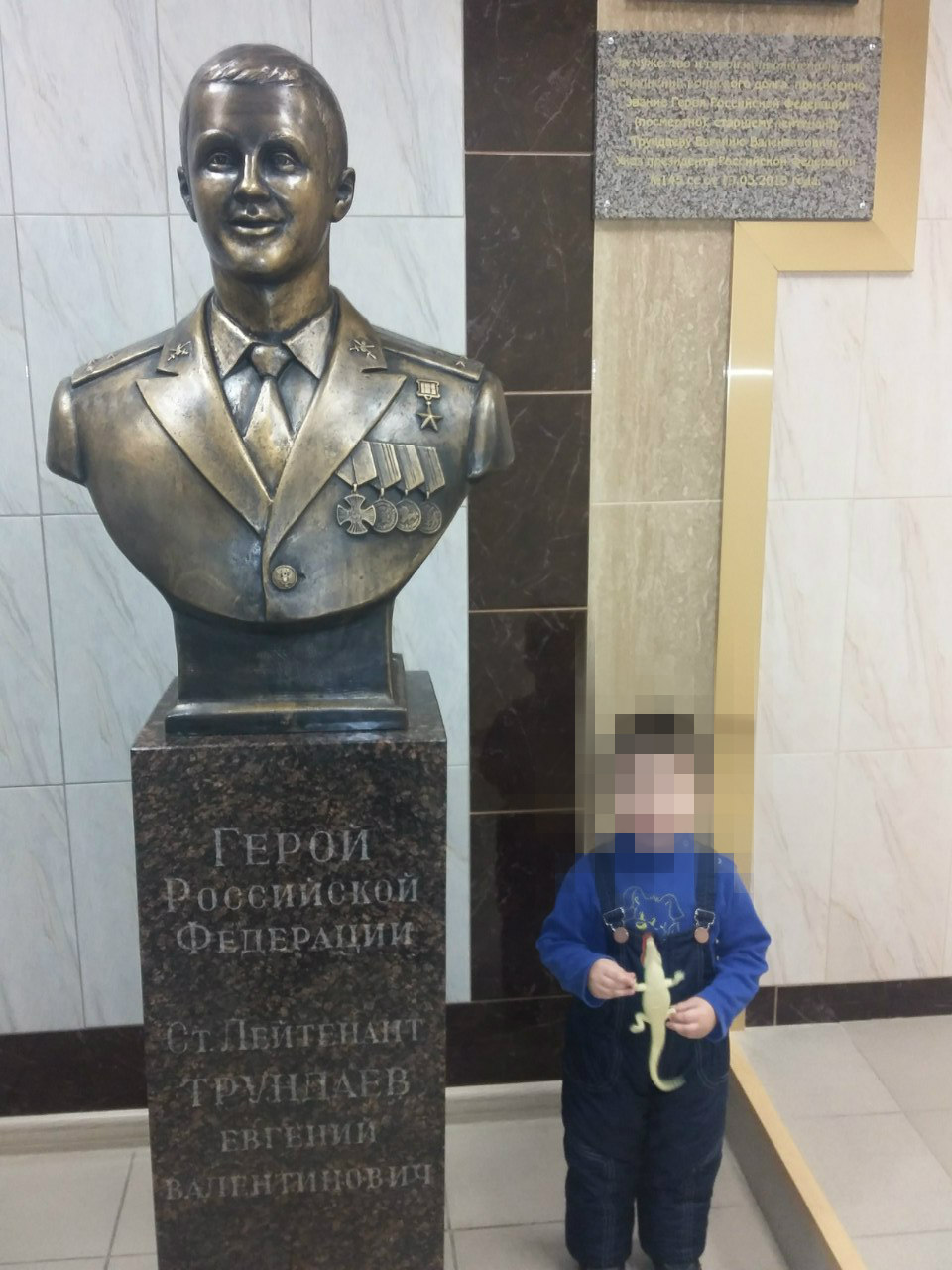 Так курсант Московского высшего военного командного училища на своей странице "ВКонтакте" аккаунта Игорь Суворов разместил фото мемориальных табличек с именами выпускников этого училища, которые стали Героями России. Крайняя правая табличка - Евгения Трундаева. Комментарий под фотографией: "Трундаев Евгений, выпускник нашего училища, погиб 15 октября под Донецком".
