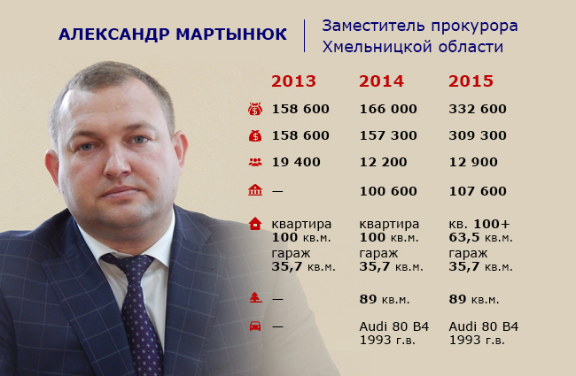 Для некоторых 2015-й стал необычайно урожайным. К примеру, заместитель руководителя Хмельницкой местной прокуратуры Александр Терлецкий, заместитель руководителя Шепетовской местной прокуратуры Вадим Мельник и заместитель руководителя Староконстантиновской местной прокуратуры Игорь Барахтенко приобрели автомобили. А заместитель руководителя Староконстантиновской местной прокуратуры Ярослав Лисовый – новую жилплощадь.