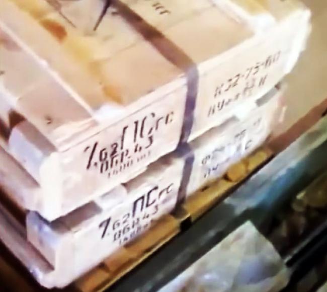 - на 0:16 секунде - ящики с советскими автоматными патронами 7,62х39 с пулей ПС производства Фрунзенского станкостроительного завода (ныне город Бишкек) 1975 года выпуска.