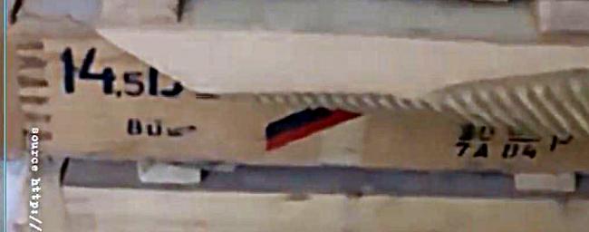 - ну и на 2:12 секунде ящики с эпичной маркировкой: выходные данные отправителя - «Рособоронэкспорт. Москва. Россия» и место получения «Тартус/Латакия». Найдено у ИГИЛ. Комментарии излишни. Ну а завершает композицию кадра ящик валовых советских трассирующих 7, 62х39 патронов 1982 года выпуска – тоже «НАТОвский».