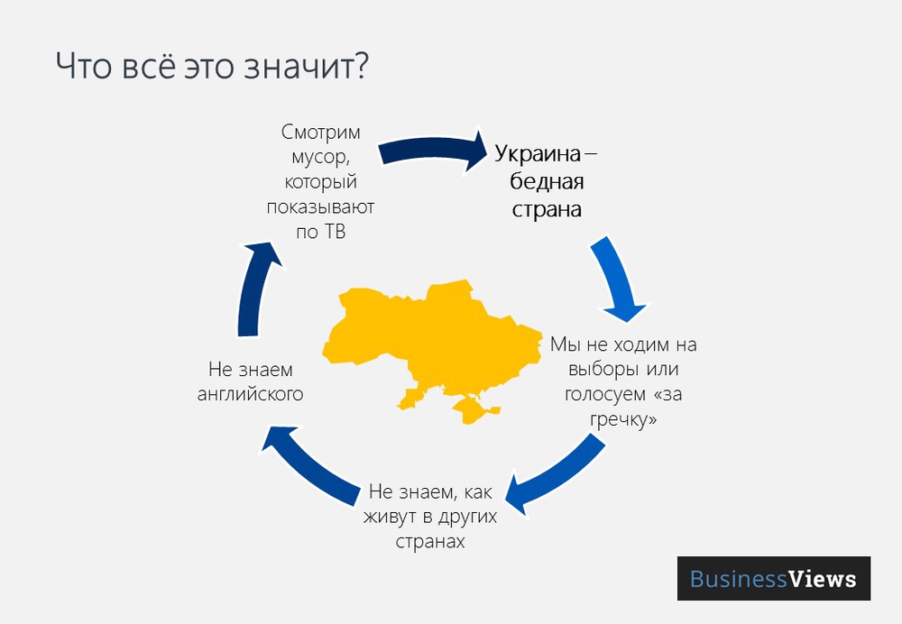 Это значит, что мы не делаем ничего для того, чтобы Украина стала богатой страной. Мы сами виноваты в своей бедности.