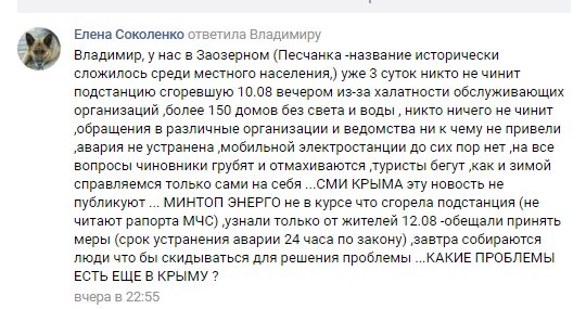 12. В Заозёрном на Песчанке 10 августа сгорела электроподстанция. Третий день люди без света и воды, СМИ о проблеме молчат, оккупанты проблему не устраняют, туристы разбегаются. “УкроДРГ” продолжает своё черное дело.