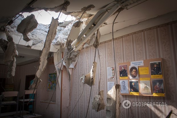 Осколки прошивают стены насквозь. Фото Юрия Кишко