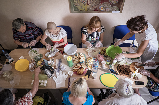 На встрече дня хосписа при Киевской городской больницы № 2. Ее участники вместе готовят блюда