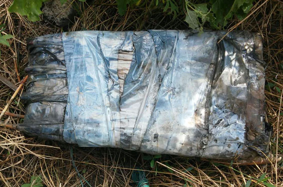 Согласно сообщению правоохранителей, внутри коробки, которую нашли под опорой моста, находятся восемь крупнокалиберных снарядов фугасного действия, перемотанный скотчем, к которым подключены провода.