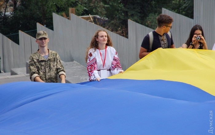 Торжественные церемонии поднятия Государственного Флага Украины состоялись также на площадях перед админзданиями Одесской облгосадминистрации, городского совета, в местах дислокации штаба ВМС Украины и других государственных учреждений.