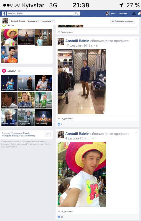 Более того на снимках с соцсетях тот же мальчишка что и на спортивных сайтах, публикующих репортажи с теннисных матчей. Да и полное сходство отмечается с фото на страницы украинской Федерации большого тенниса, где отмечены достижения Анатолия Райнина. А его отец не раз в интервью говорил о том, что сын серьезно занимается этим видом спорта.
