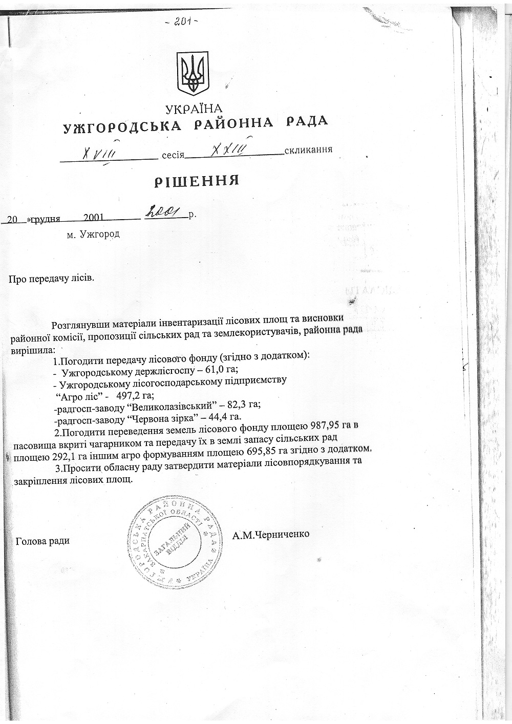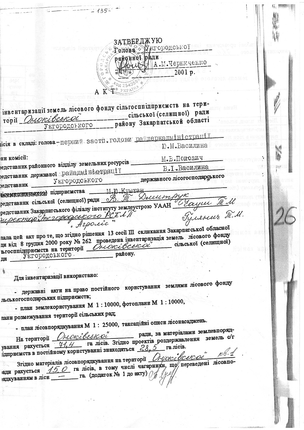 Підставою для відмови став той факт, що території, на які претендувала пані Павліченко, за формою 6-зем визначалися як ліс 1-ої категорії. Який, утім, за деякий час невідь в який спосіб перетворився на «чагарники». І одразу вслід за магічним перетворенням Ужгородський міськрайонний суд своїм рішенням зобов’язав Оноківську сільську раду передати у приватну власність заявниці земельну ділянку, на який нині зведено будинок і триває подальше будівництво з паралельним знищенням багаторічних лісових насаджень.