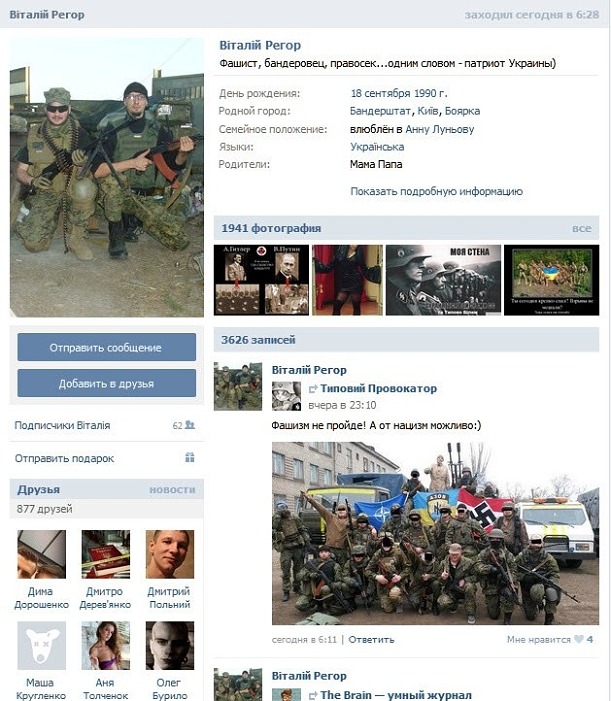 Сторінка Віталія Регора у соцмережі ВКонтакті