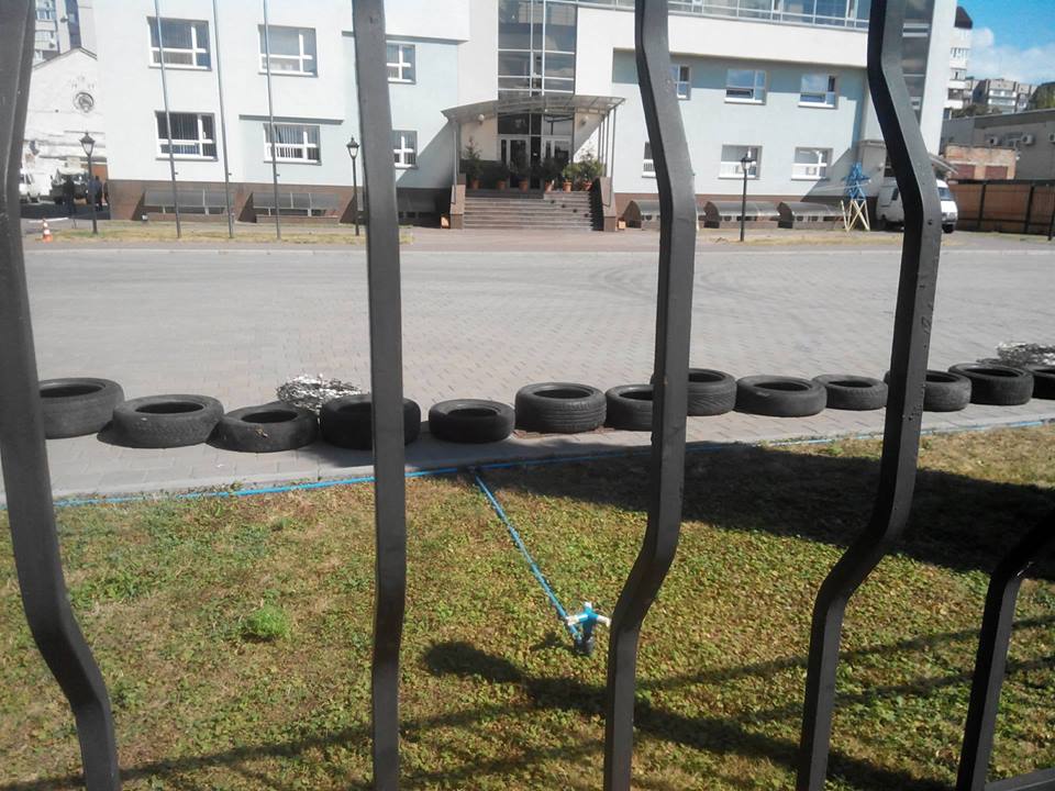 Сегодня, 9 сентября, неизвестные перекрыли все выезды с территории «Черкассыоблэнерго». Для этого они использовали грузовики и шины. Кроме того, по периметру предприятия была расставлена охрана, наготове также лежит колючая проволока. Сотрудников учреждения с заблокированной территории не выпускают.