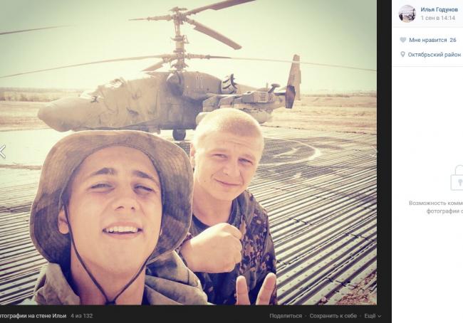 Теперь самое интересное фото, на котором запечатлены горловский сепаратист-снайпер Шелудько Сергей и упомянутый нами выше российский разведчик-снайпер Годунов Илья из 346-й ОБрСпН ГРУ. Место съемки на фото не идентифицировано. На России или в Украине сделано фото? Попробуйте сами ответить на этот вопрос.